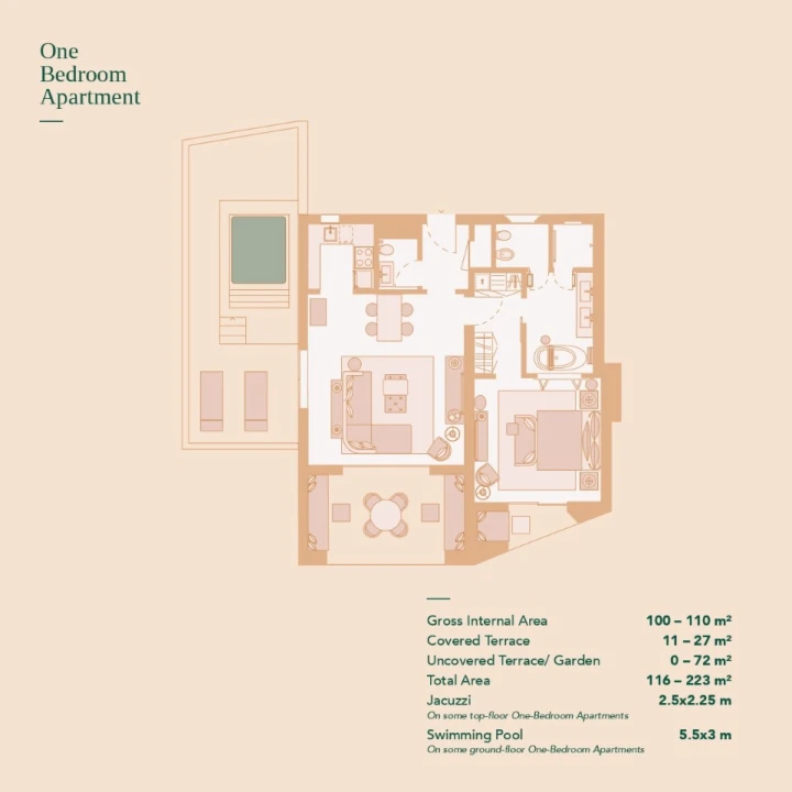 Este apartamento de 74 m2 de área bruta privativa, completamente mobilado e equipado segundo os exigentes padrões de cinco estrelas da Viceroy Hotels & Resorts, dispõe de 1 quarto.