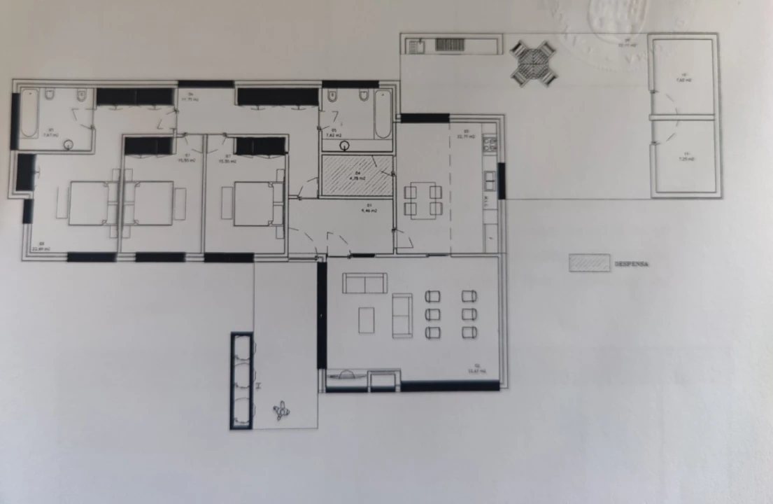 Possuí cozinha bastante ampla, despensa, lavandaria, sala, 3 quartos sendo 1 suíte, 2 Wcs sendo 1 suíte, garagem e arrumos