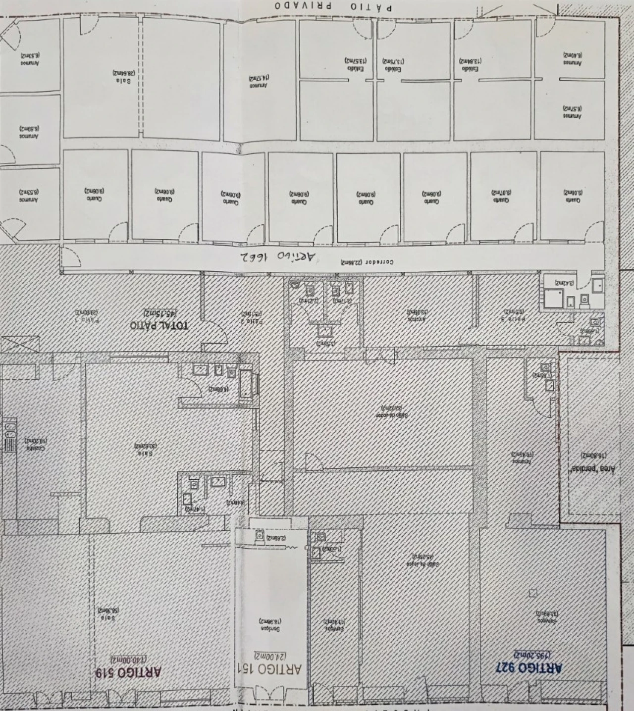 Casas de r/chão destinadas a comércio e vários quartos e arrumos, fazendo um total de 671,4 m2.
