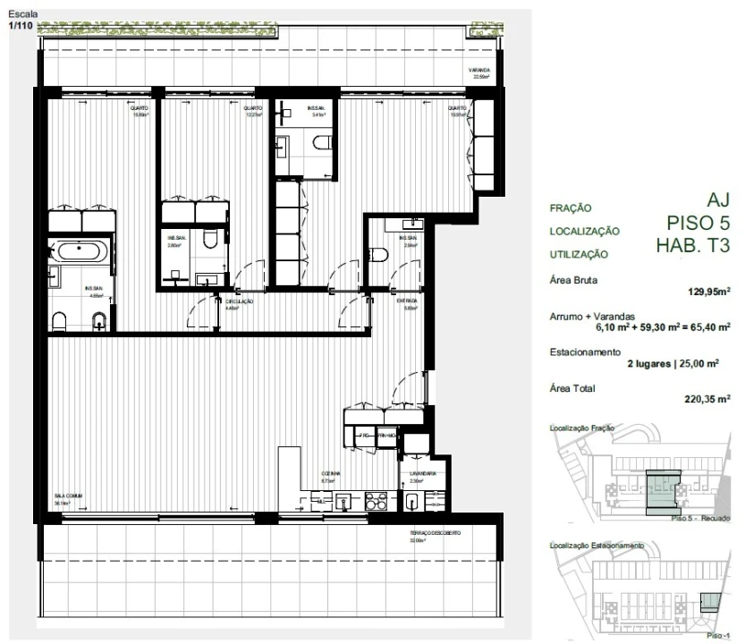 Ar condicionado, painéis solares para aquecimento de águas, estores elétricos, louças suspensas nas wc's, armários embutidos fazem parte de algumas das comodidades deste empreendimento.