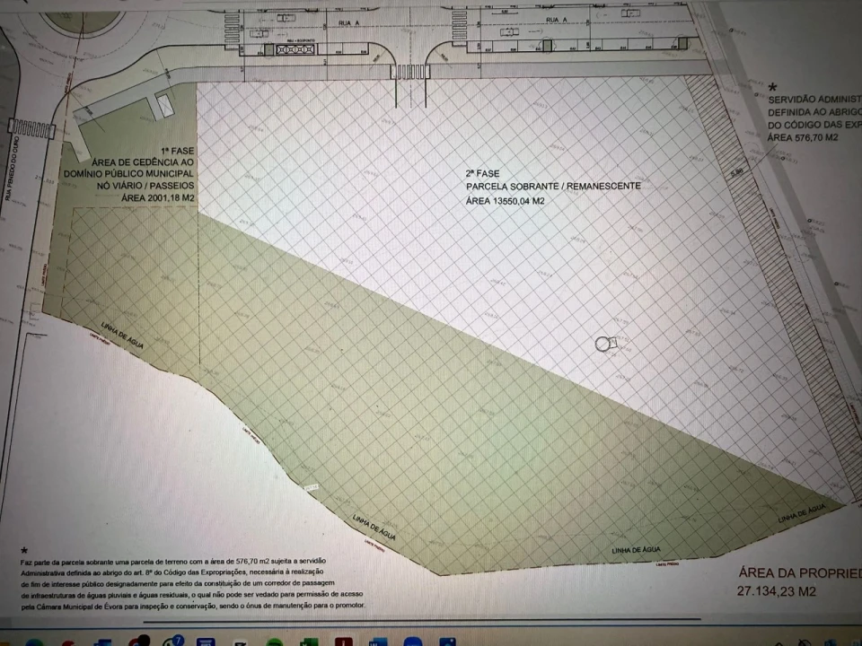 De momento, embora o terreno esteja dentro do perímetro urbano de Évora, a certidão permanente passará a terreno urbano com a emissão de alvará de loteamento que implicará o registo de cada um dos lotes e da respetiva parcela sobrante.