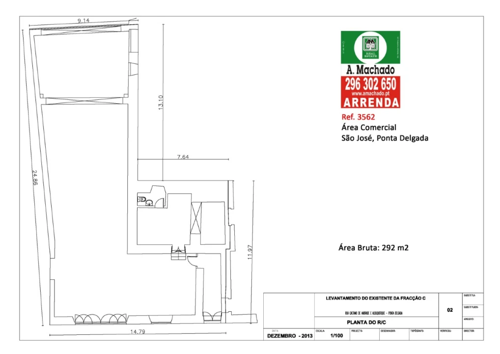 Ampla Área comercial para arrendamento, sito num RÉS-DO-CHÃO, com área bruta de 292 m2, localizada no centro histórico de Ponta Delgada, destinada a comércio ou serviços.