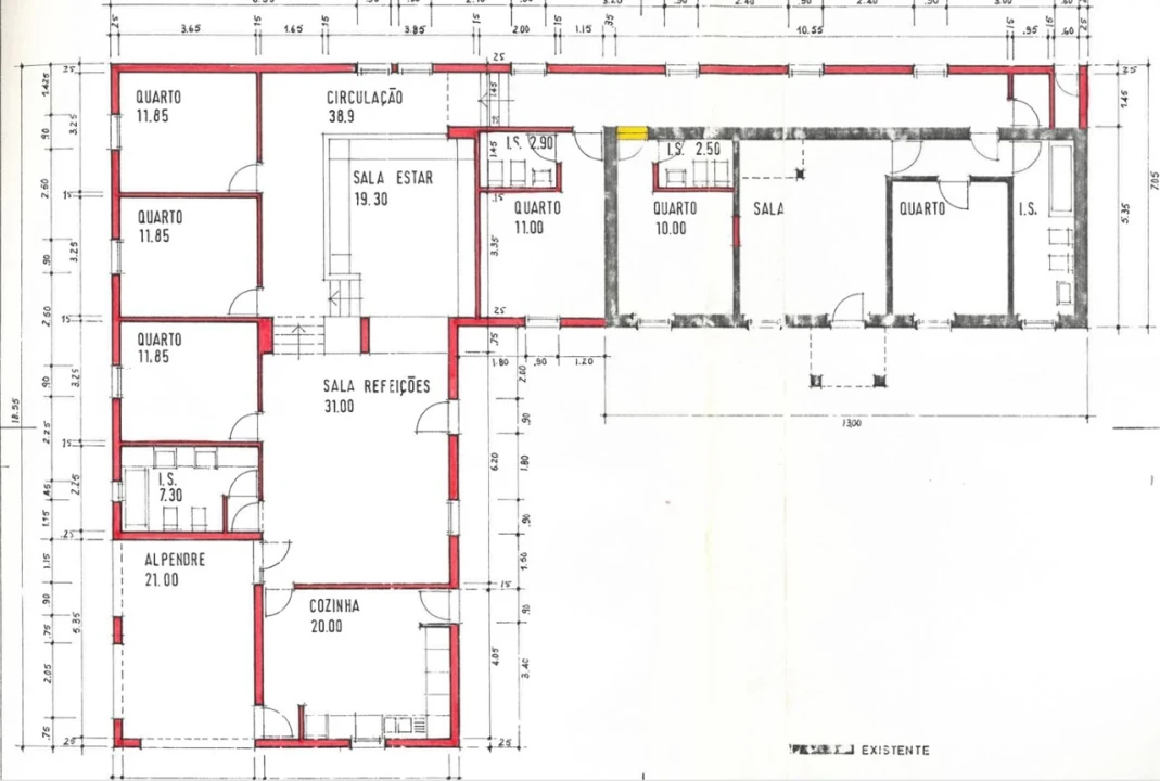 A moradia unifamilar e principal da quinta, num piso único, é composta por 3 suites, dois quartos, wc social, salinha/escritório, cozinha e ampla área social incluindo a sala de estar e sala de refeições.