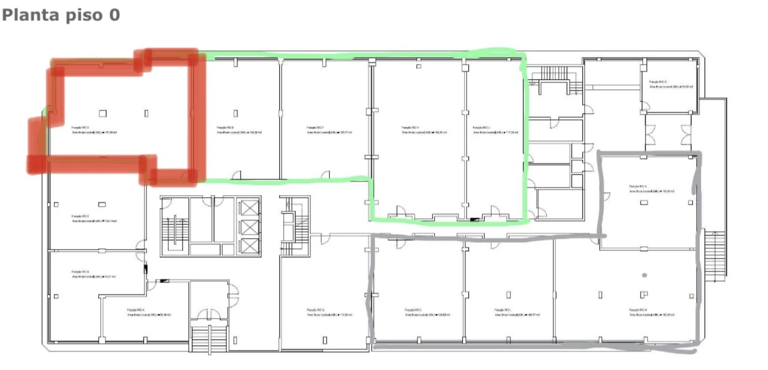 O edifício tem 12 pisos, sendo 10 acima do solo e 2 abaixo do solo. No piso 0 há duas zonas com frações contíguas e as frações do piso 6 representam a totalidade do piso.