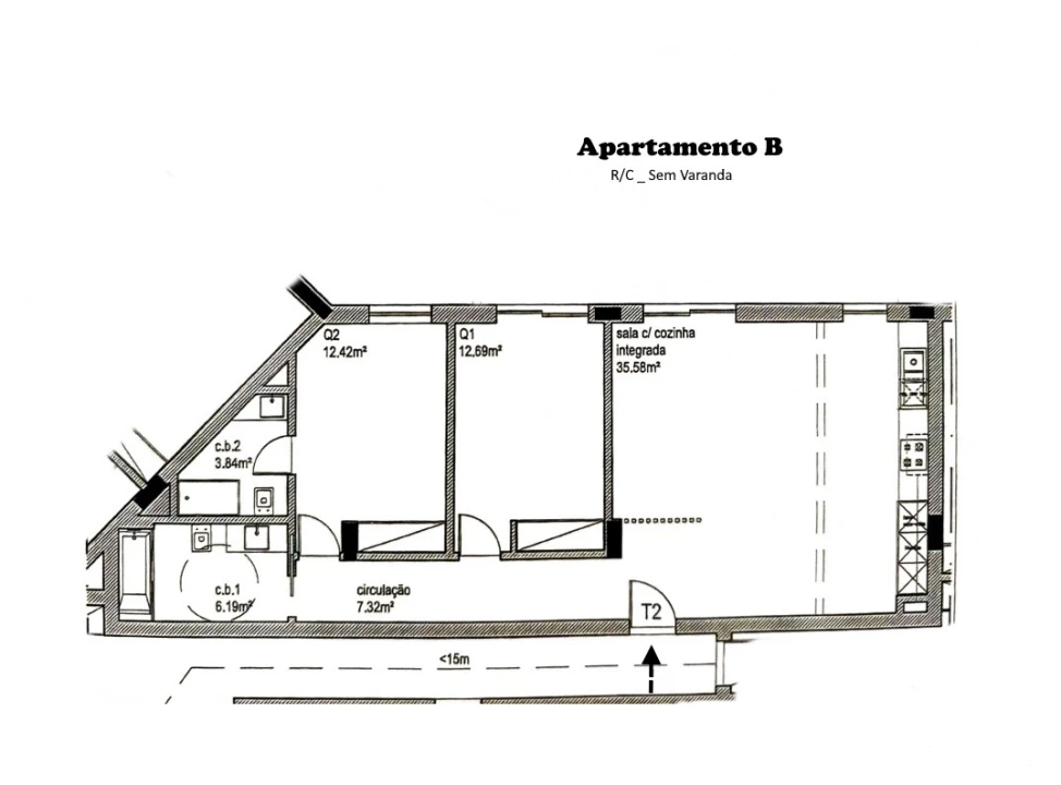 Apartamentos luminosos de tipologia T2 e T3 com cozinhas equipadas e varandas espaçosas.