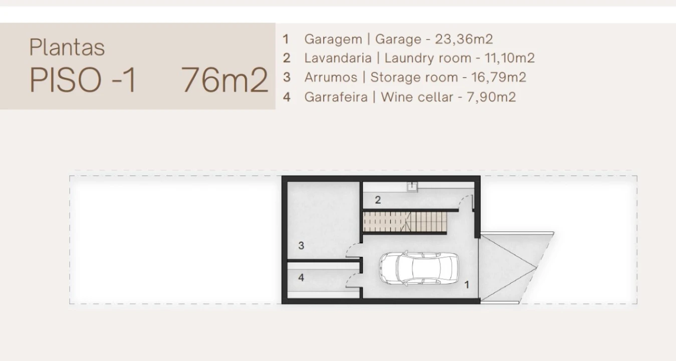 Esta moradia nova a estrear conta com 4 assoalhadas; 3 casas de banho com base de duche; 2 pátios interiores; todos os quartos com roupeiros embutidos; sala e cozinha em open space; dispensa; espaço exterior com churrasqueira, zona de refeições e lazer; piscina; garagem bastante ampla; lavandaria; uma garrafeira e um quarto de arrumos.