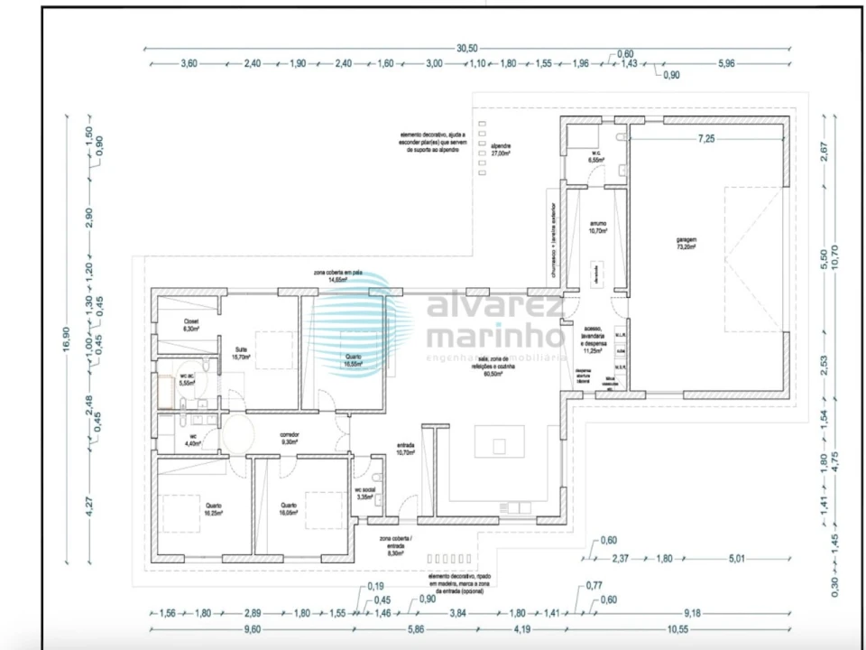 Piso 0 - Hall Entrada, Kitchenette, Sala com lareira, Cozinha equipada, 3 quartos, 1 suite com closet, 3 instalações sanitárias sociais, e uma garagem ampla para 3/4 carros, lavandaria.