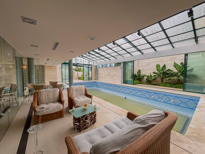 800m2 de Construção inserido num lote de 1000m2 com piscina com ondulação e Jacuzzi, aquecidos.