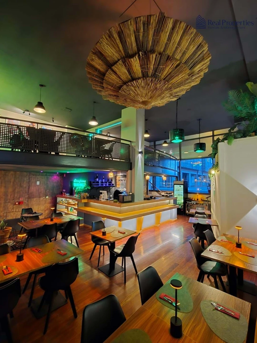 O espaço destaca-se pelo seu ambiente moderno, luminoso e acolhedor, ideal para criar um conceito de restauração diferenciado e com identidade própria.
