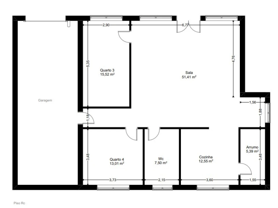 Primeiro andar: cozinha, sala, dois quartos e casa de banho.