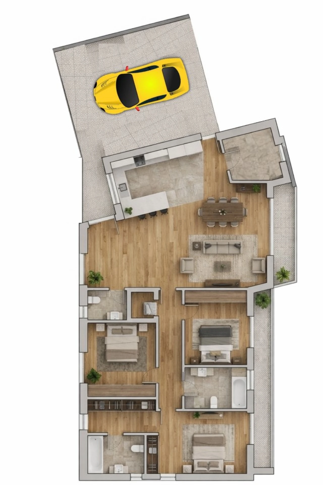 Na zona privada encontram-se três quartos espaçosos, sendo um deles em suíte com um prático closet, e três casas de banho completas, garantindo conforto e comodidade a toda a família. Para maior funcionalidade, o imóvel inclui ainda uma prática e discreta lavandaria.