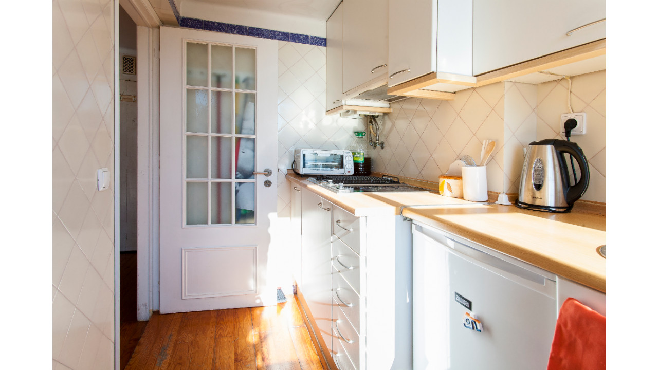 O apartamento está bem conservado, com azulejos originais, e pronto a habitar. Inclui no arrendamento os serviços de internet de alta velocidade e o alarme de segurança. Não inclui a eletricidade, a água e o gás (em garrafa).