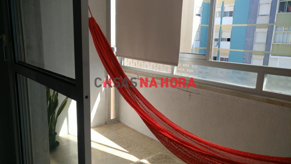 A sala é ampla, com cerca de 20m2, também tem marquise e ficará mobilada.