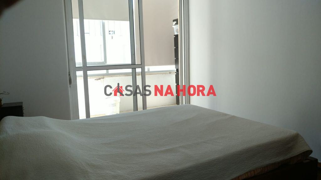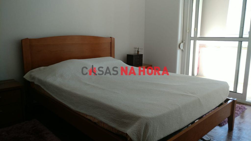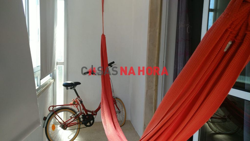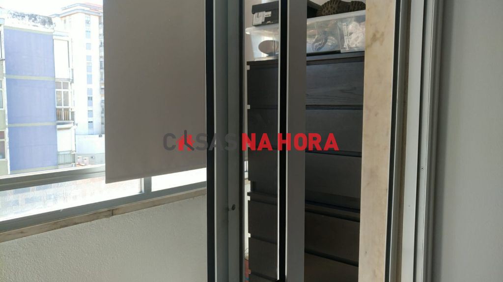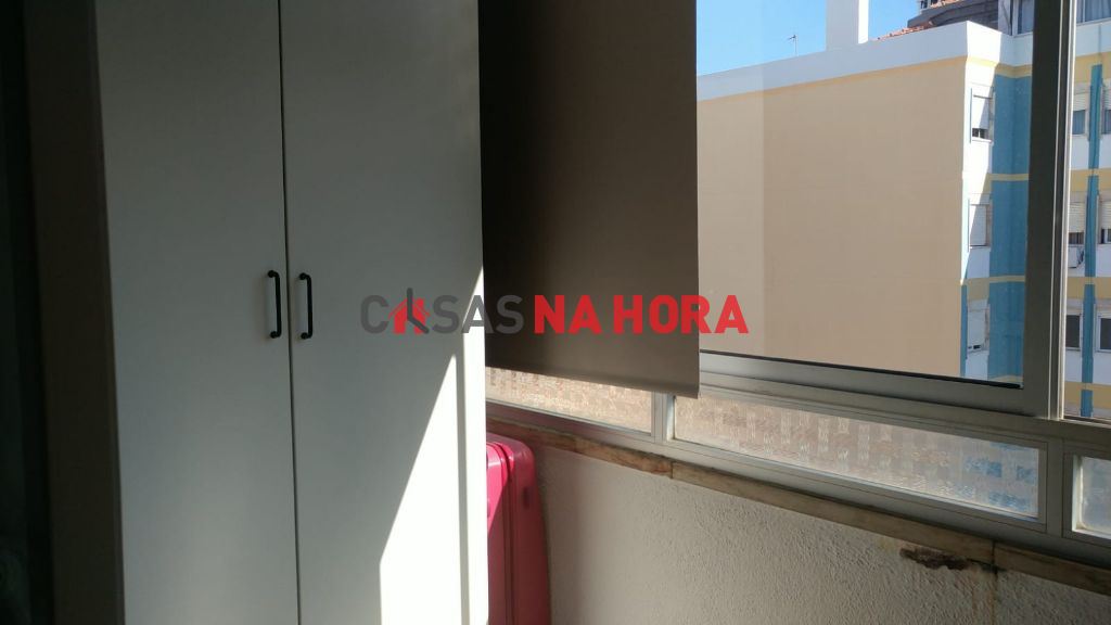 Este apartamento contém um quarto com cerca de 16m2 e marquise com armário de arrumação.