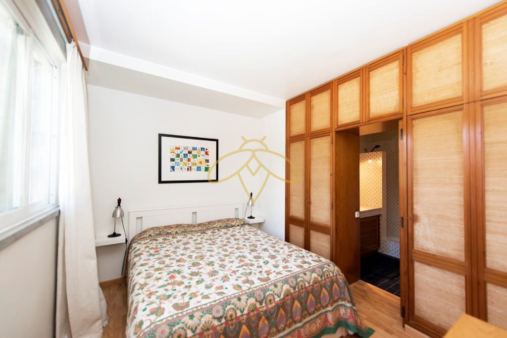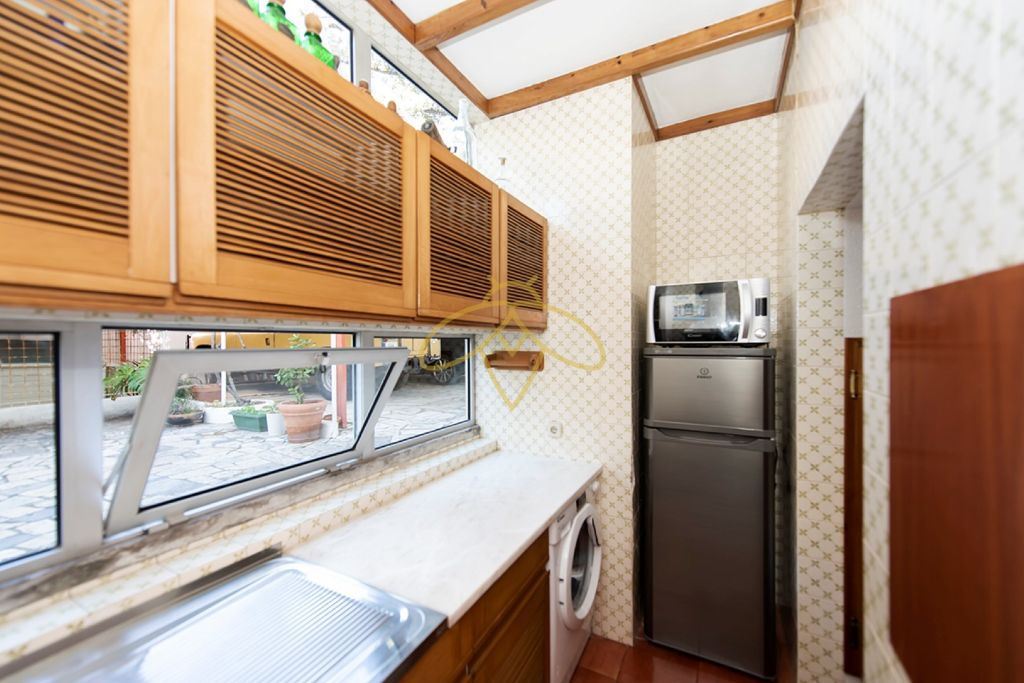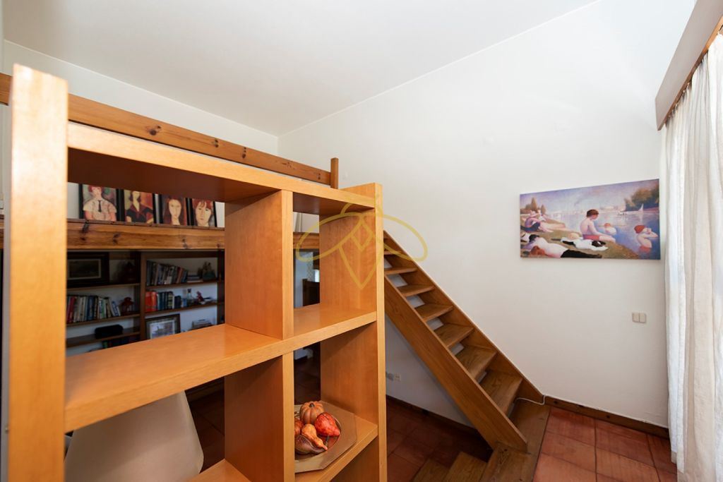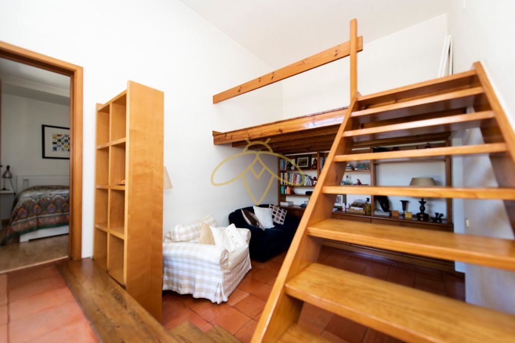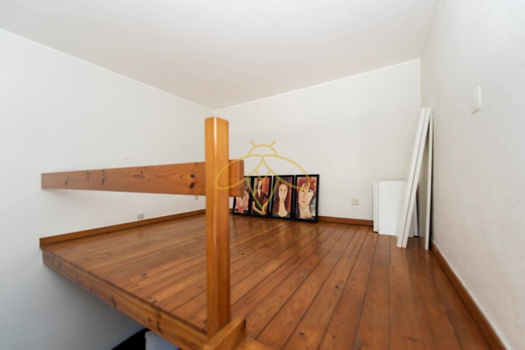 Apartamento T1+1 mobilado e equipado com mezanine com cerca de 12m2 que dá para fazer um quarto ou um escritório, quarto com 12m2, sala com 20m2 e cozinha com 6m2.