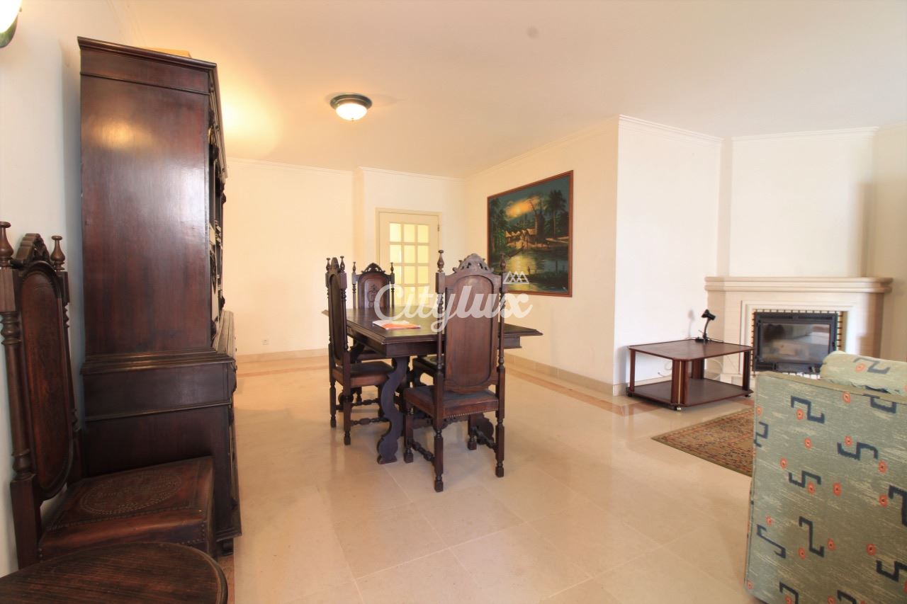 Apresenta uma sala ampla com 39,50m², com lareira/recuperador, com duas grandes portas de acesso à varanda, que possibilitará a criação de um espaço exterior privado, cheio de luz, pela sua exposição solar poente.