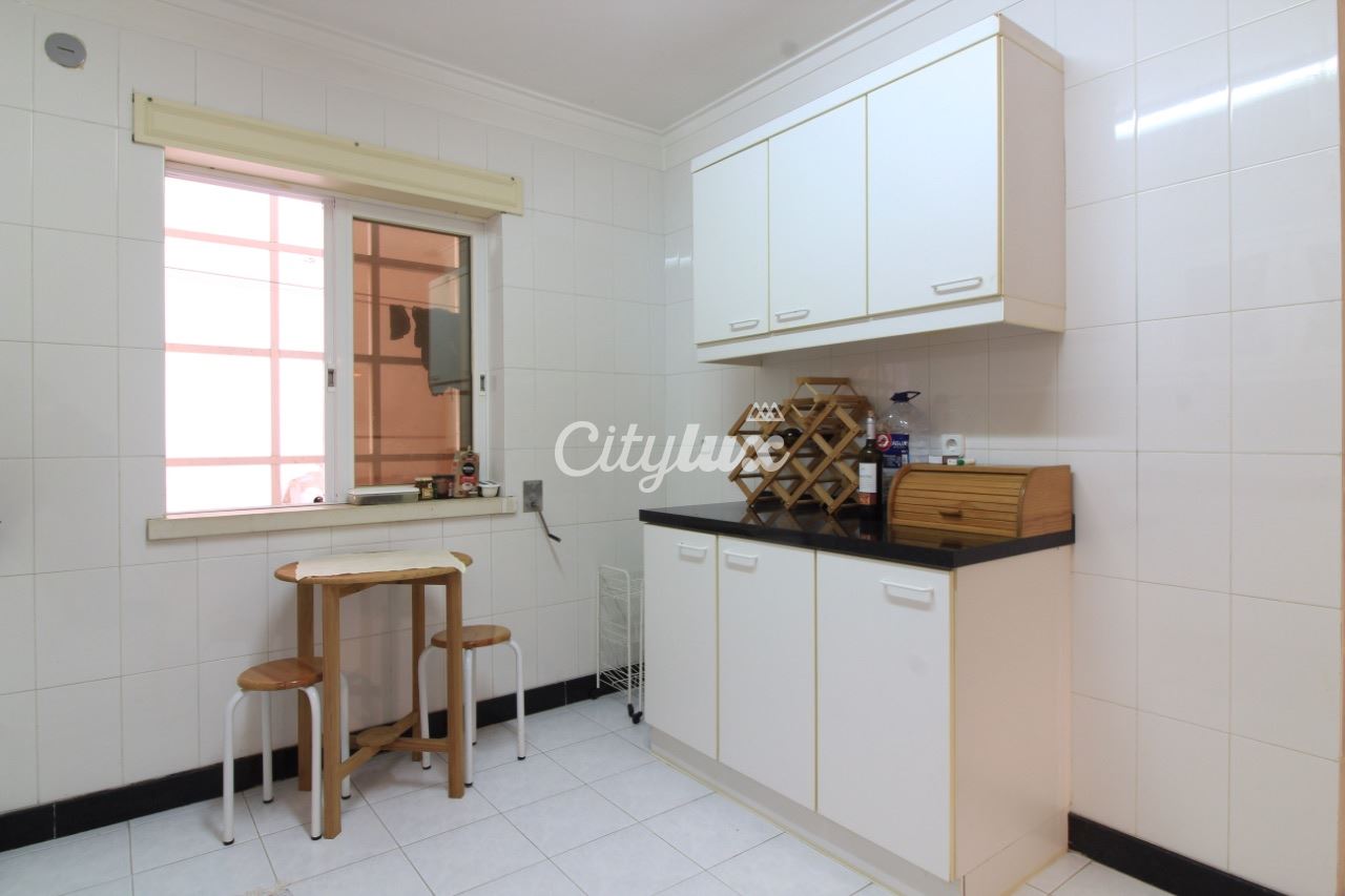 A cozinha, também ampla, com zona de lavandaria e totalmente equipada, permite criar uma boa zona de refeições, numa área total de 30m².