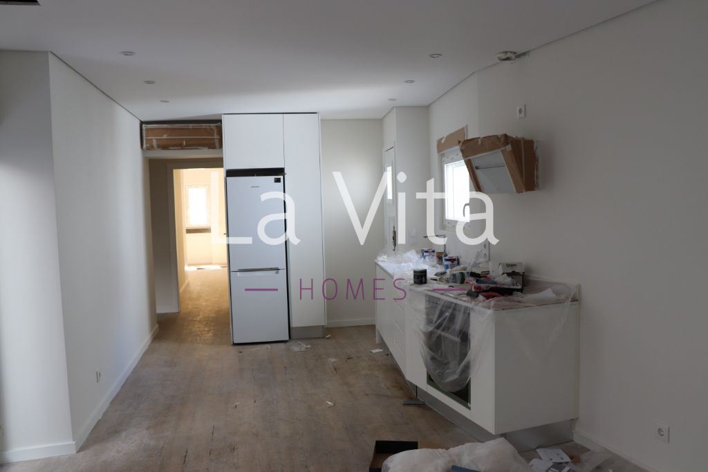 Excelente apartamento T2 totalmente remodelado, junto a todo o tipo de comércio e a 1 minuto a pé da praia.