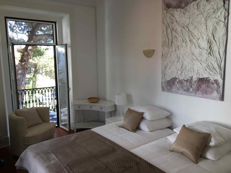 Localizada num Palacete, no centro Histórico do Monte Estoril, perto de comércio, serviços