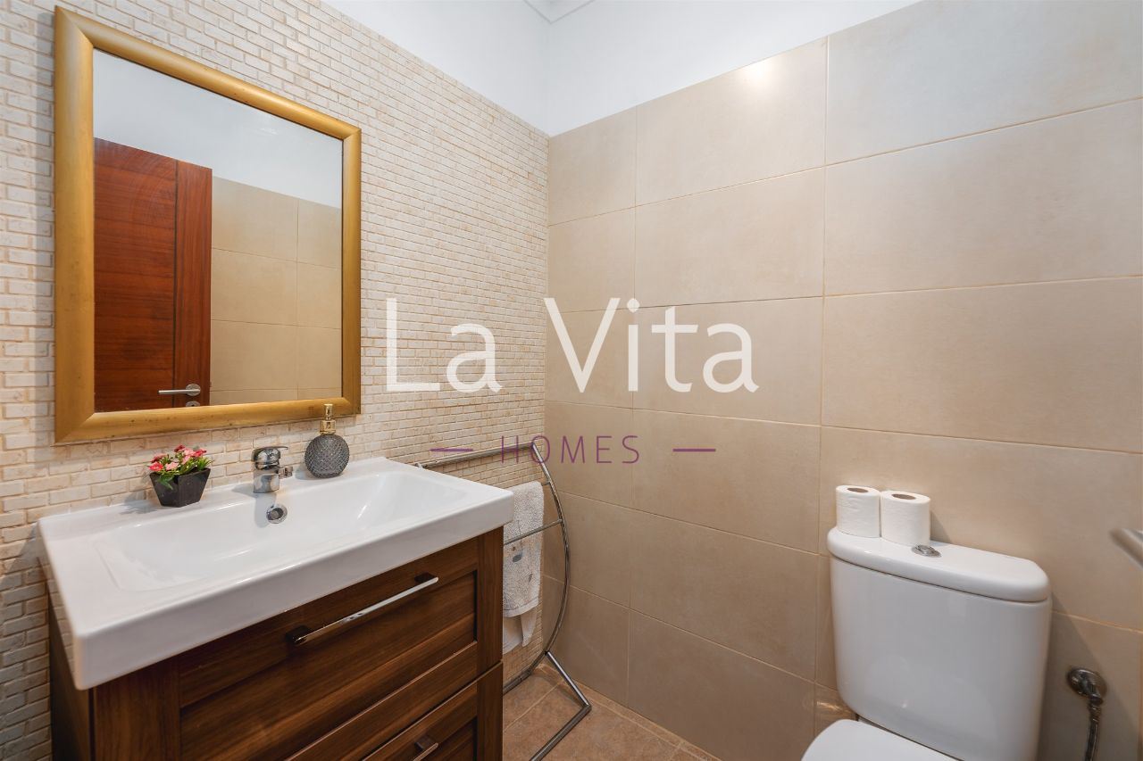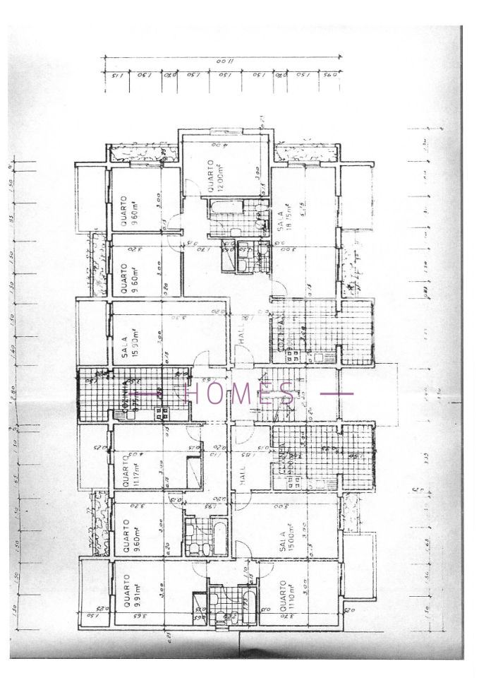 Sala (20 m2) com Ar Condicionado, Cozinha equipada, 3 quartos (10 m2, 10m2, 13 m2), Wc social e Wc completo com banheira.