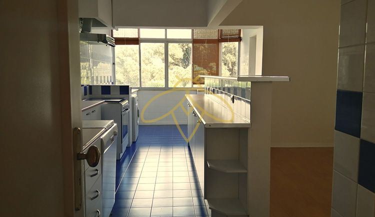 Monte Estoril, apartamento T2+1 , situado num 5º andar, vista desafogada, cozinha completamente equipada, zona de tratamento de roupas, sala de estar e sala de refeições (27m +12 m2), duas casas de banho com janela, madeiras claras, portas lacadas a branco, varanda fechada, vista sobre o verde.