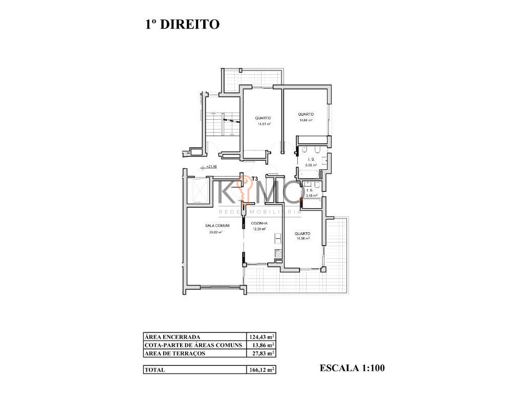 - Dois amplos quartos com 14m2 cada;