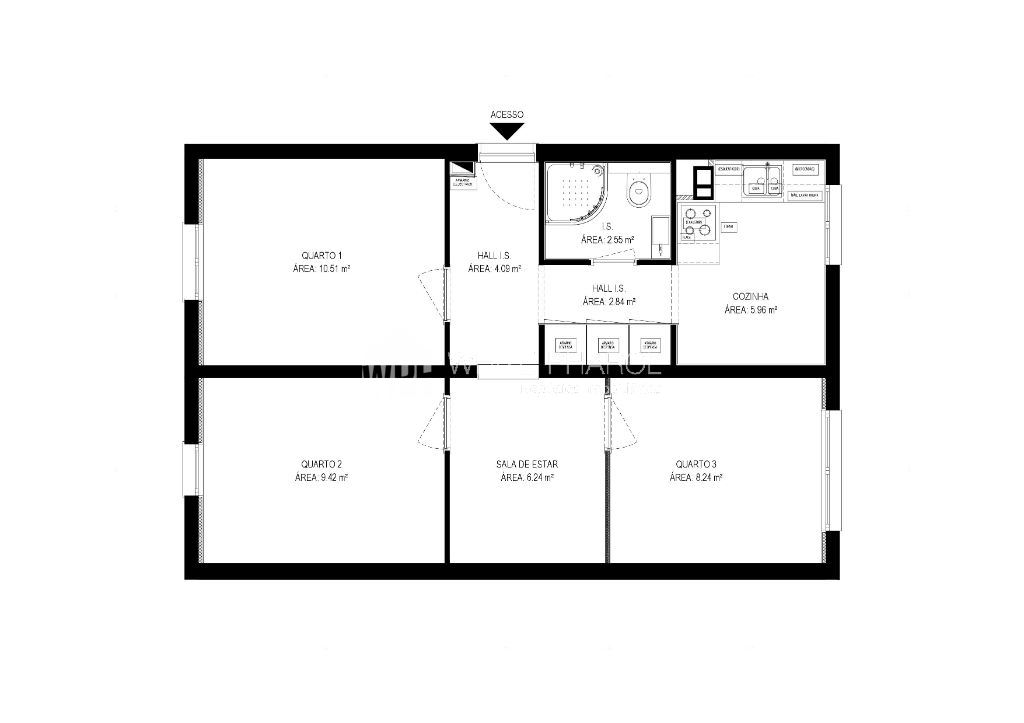Chão em soalho flutuante, água e gás substituídos.