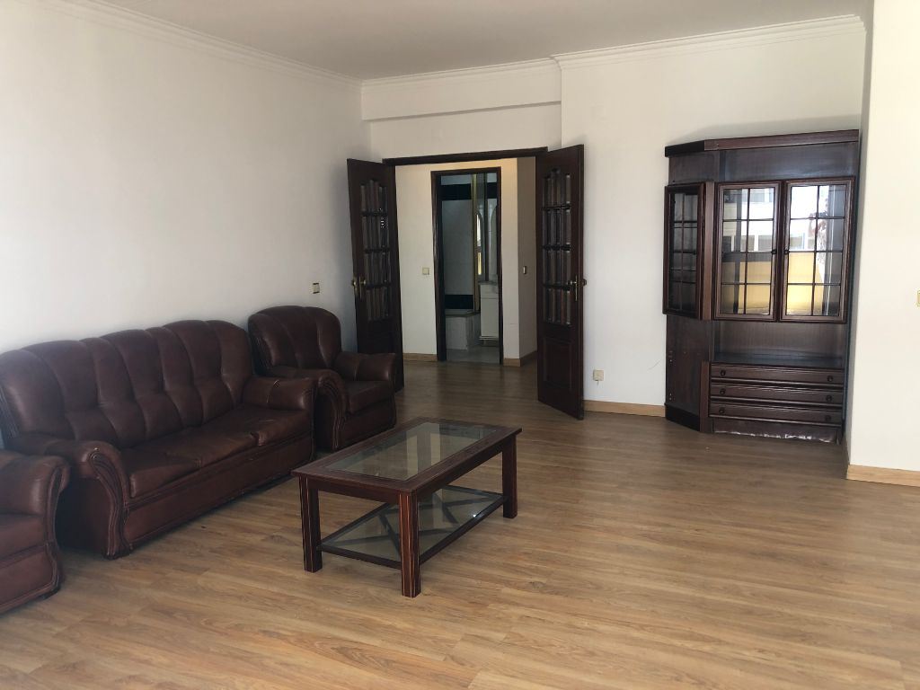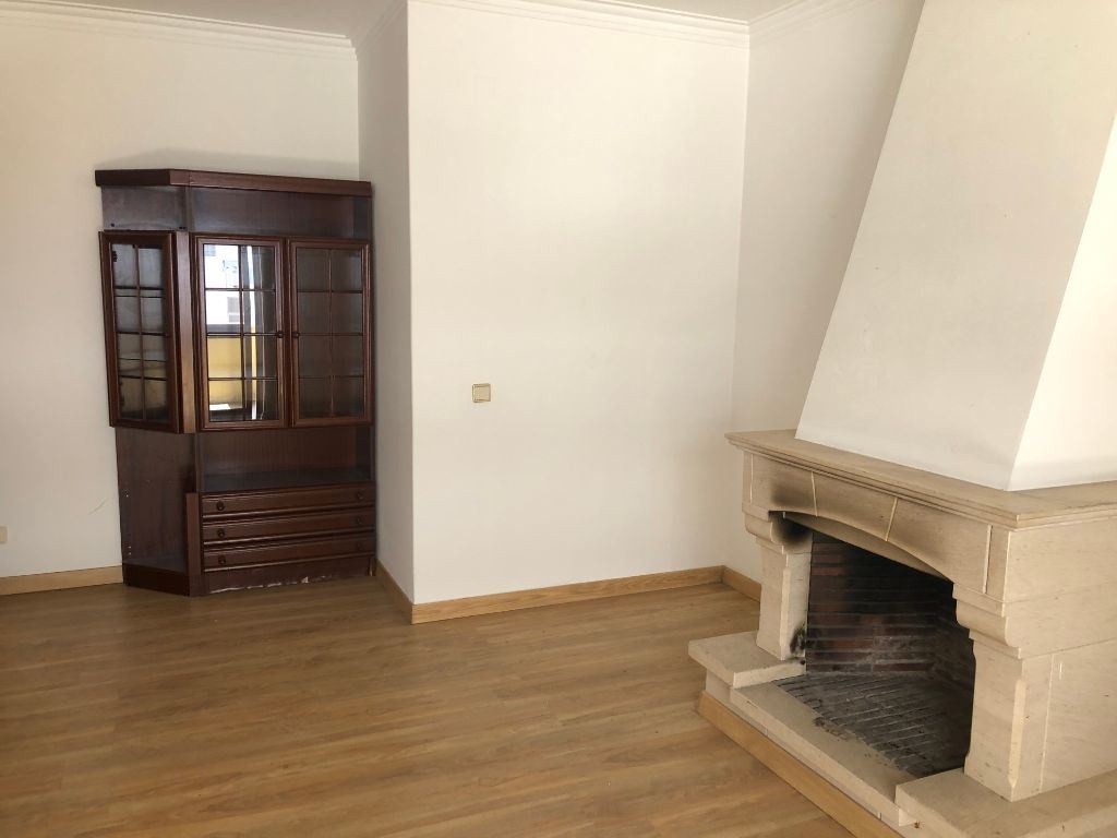 Apartamento com quatro boas assoalhadas, bastante arrumação e sala com lareira e varanda.