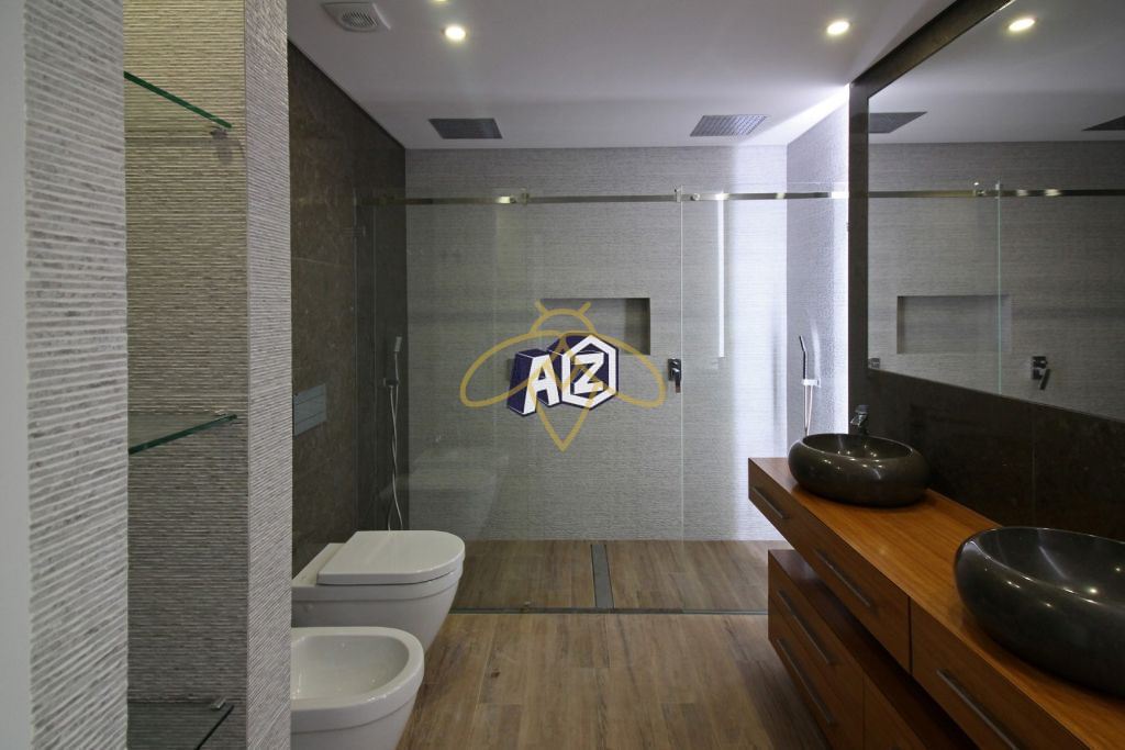 Excelentes áreas, vídeo porteiro, aquecimento central, cozinha equipada, lareira com recuperador. Caixilharias de abrir em PVC termolacado com oscilobatentes, vidros duplos com proteção térmica, estores eléctricos, peitorais e soleiras em granito.