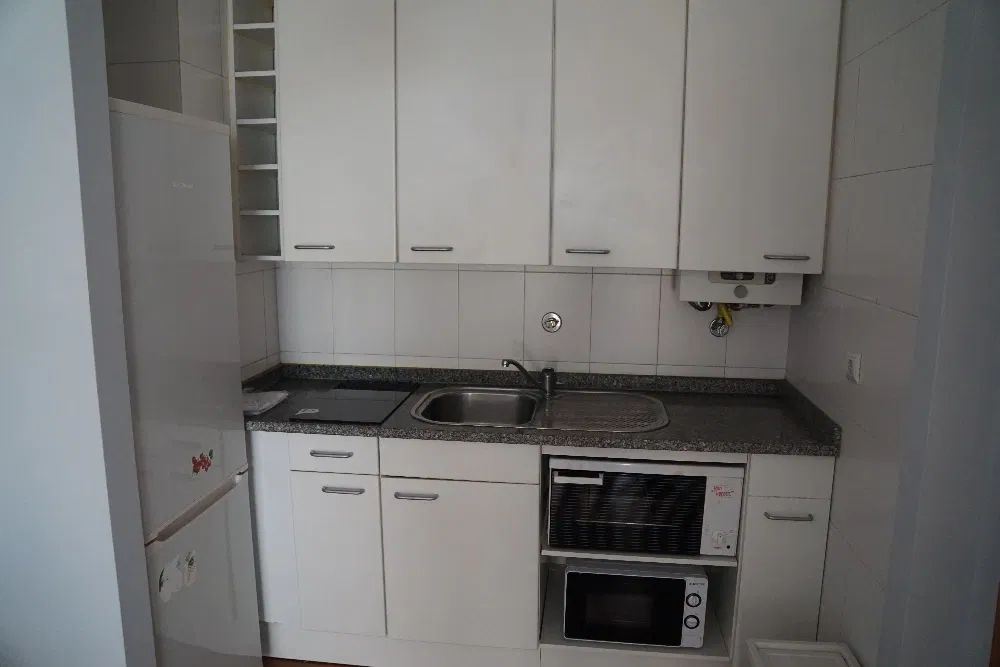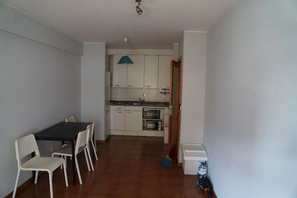 O apartamento está totalmente renovado e é composto por um Hall de entrada, sala e cozinha tipo kitchenet equipada com frigorífico, placa vitrocerâmica, forno, micro-ondas, máquina lavar e uma mesa e 4 cadeiras, um quarto com armário roupeiro) com portas de correr, um WC completo e uma varanda ampla à qual tem acesso o quarto e a sala. Tem lugar de garagem onde podem caber 2 carros , O apartamento está voltado a Nascente.