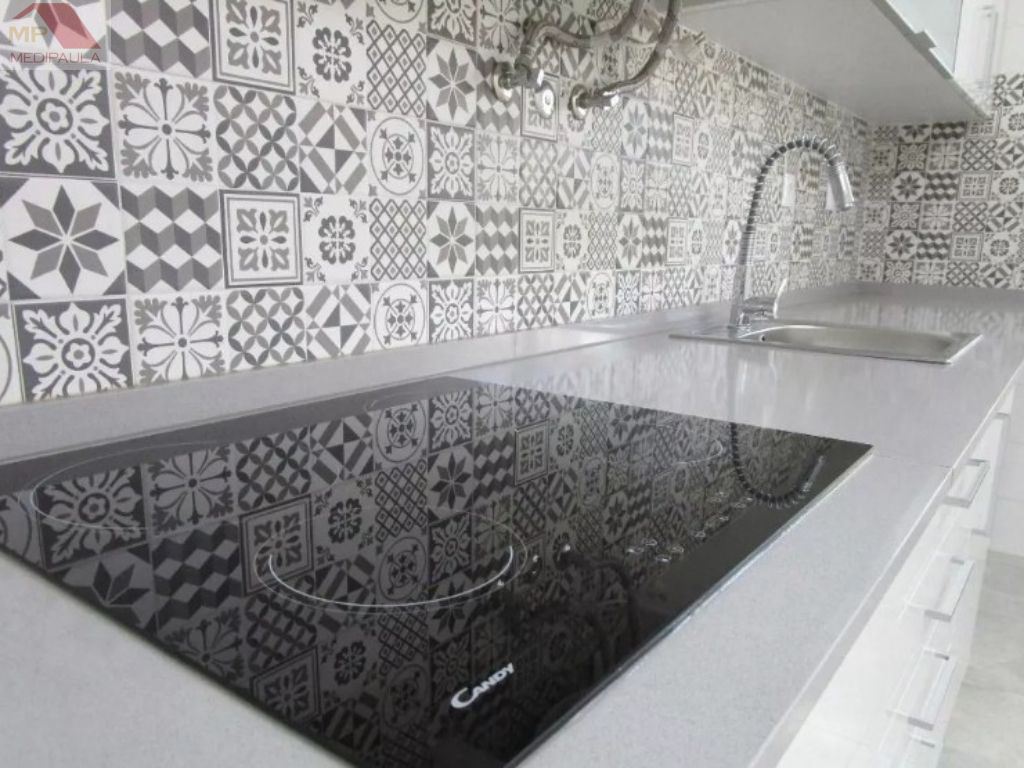 Cozinha com 14 m², equipada com: placa em vitrocerâmica, forno, micro-ondas e cilindro.
