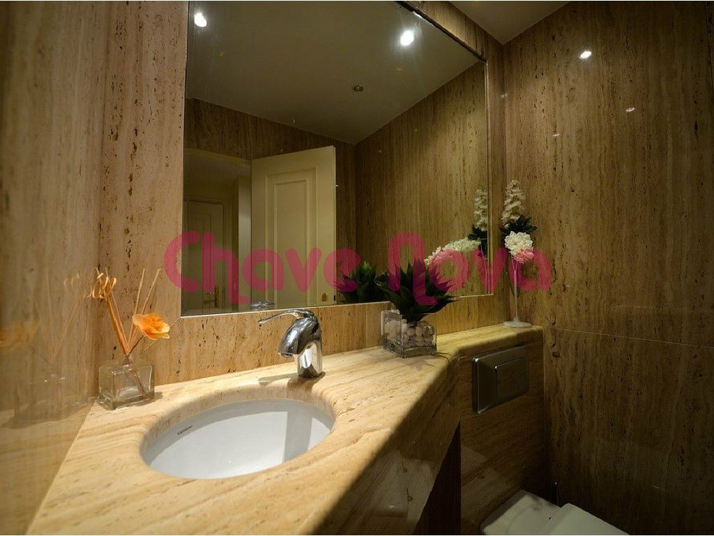 Tem 3 suites muito generosas e uma Master com cerca de 50m2, inclui sala de banho com vista para o mar.