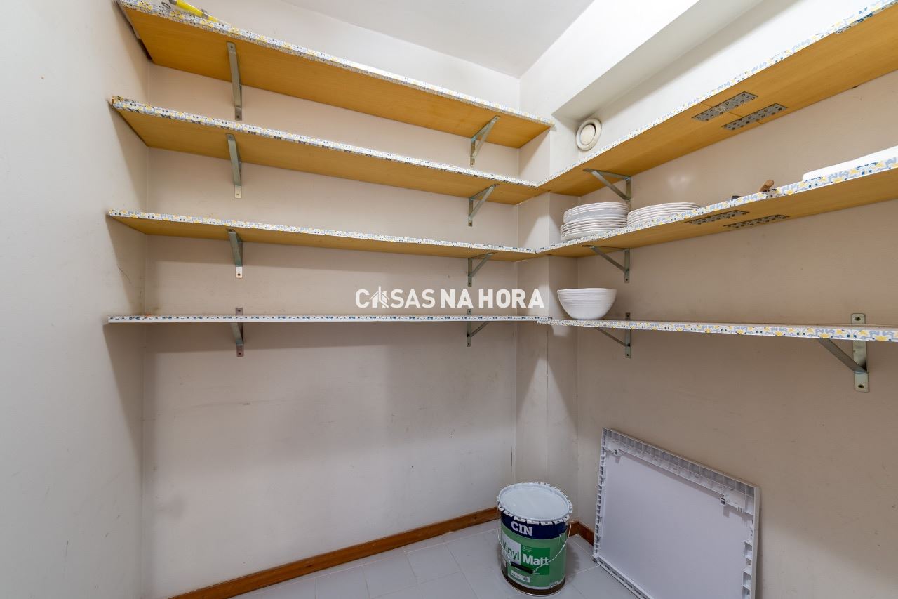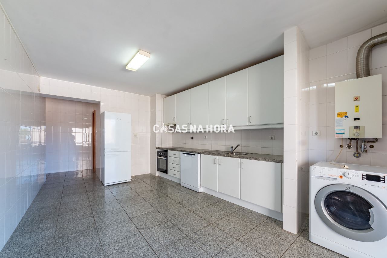 Ampla sala com lareira, cozinha equipada com exaustor, placa vitrocerâmica, forno, frigorifico combinado, máquina de lavar loiça e máquina de lavar roupas. Possui ainda uma despensa de boas dimensões.