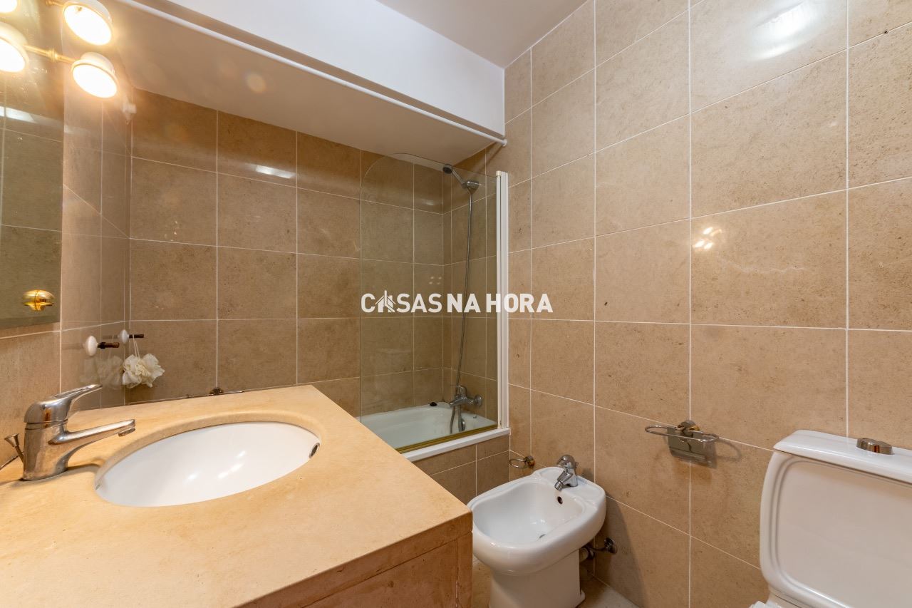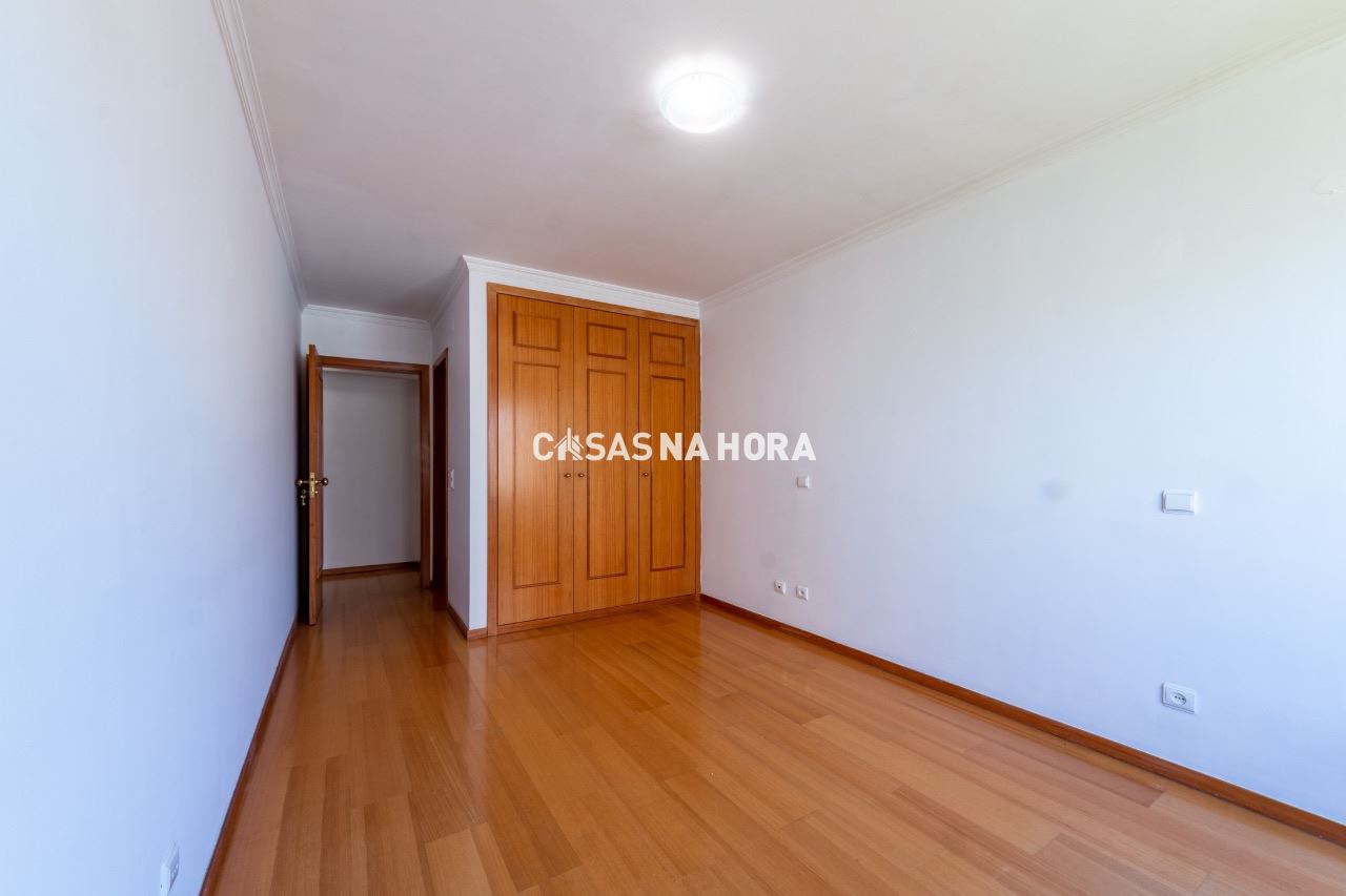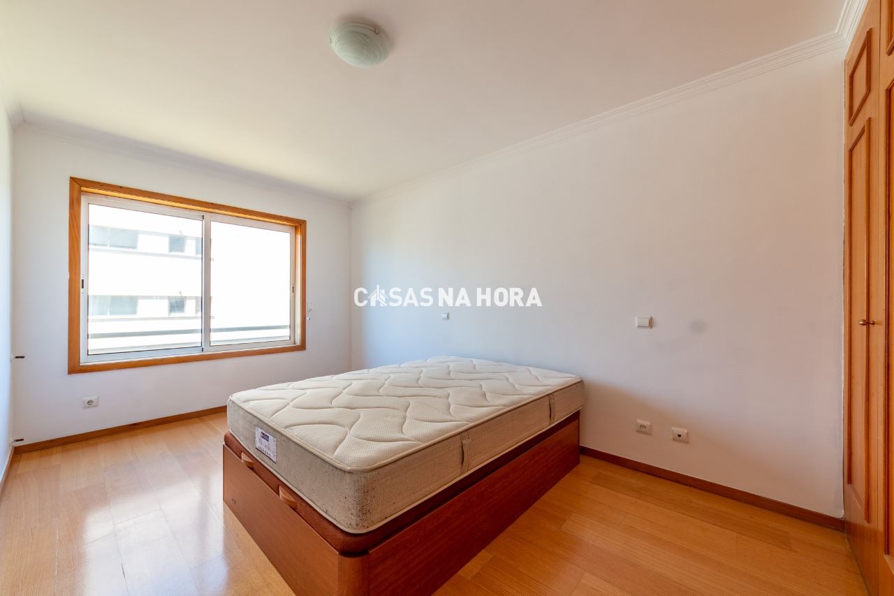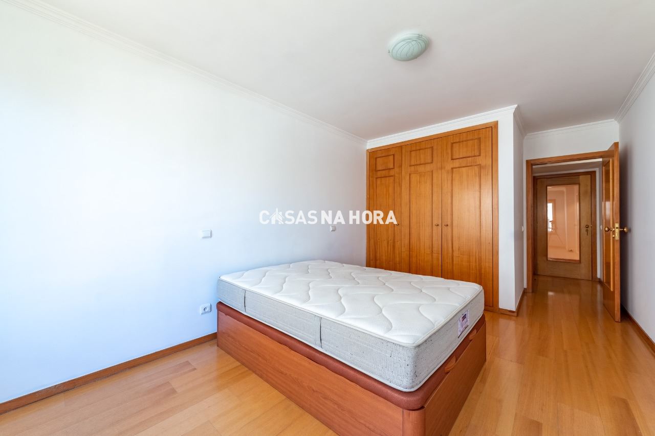 Os dois quartos possuem roupeiro e um deles é uma suíte.