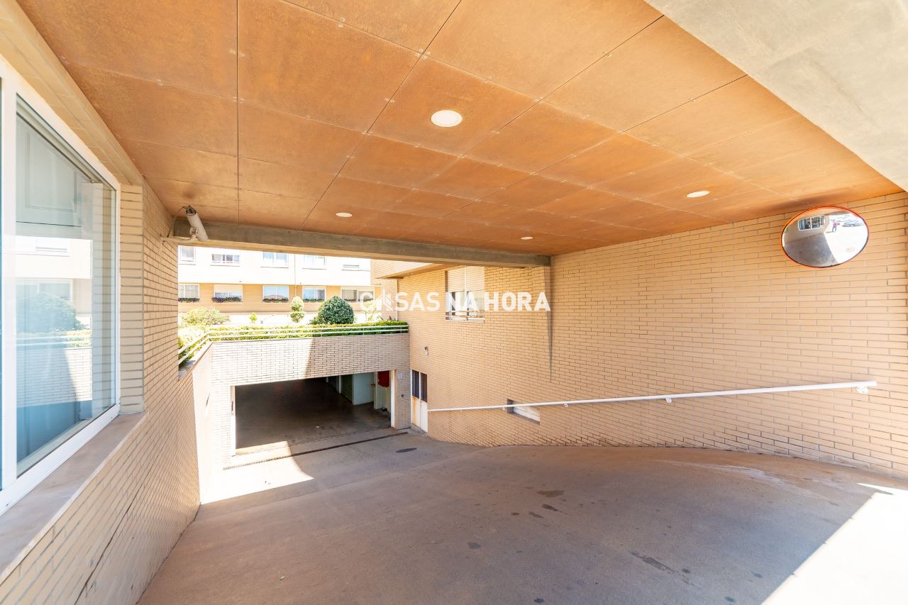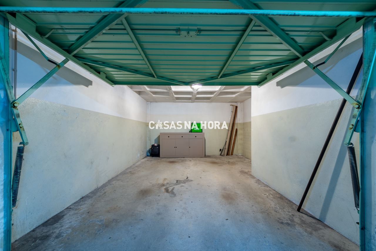 A garagem é fechada, com espaço para arrumos.