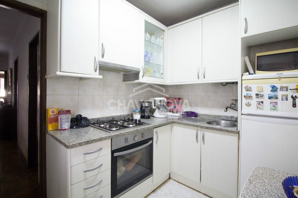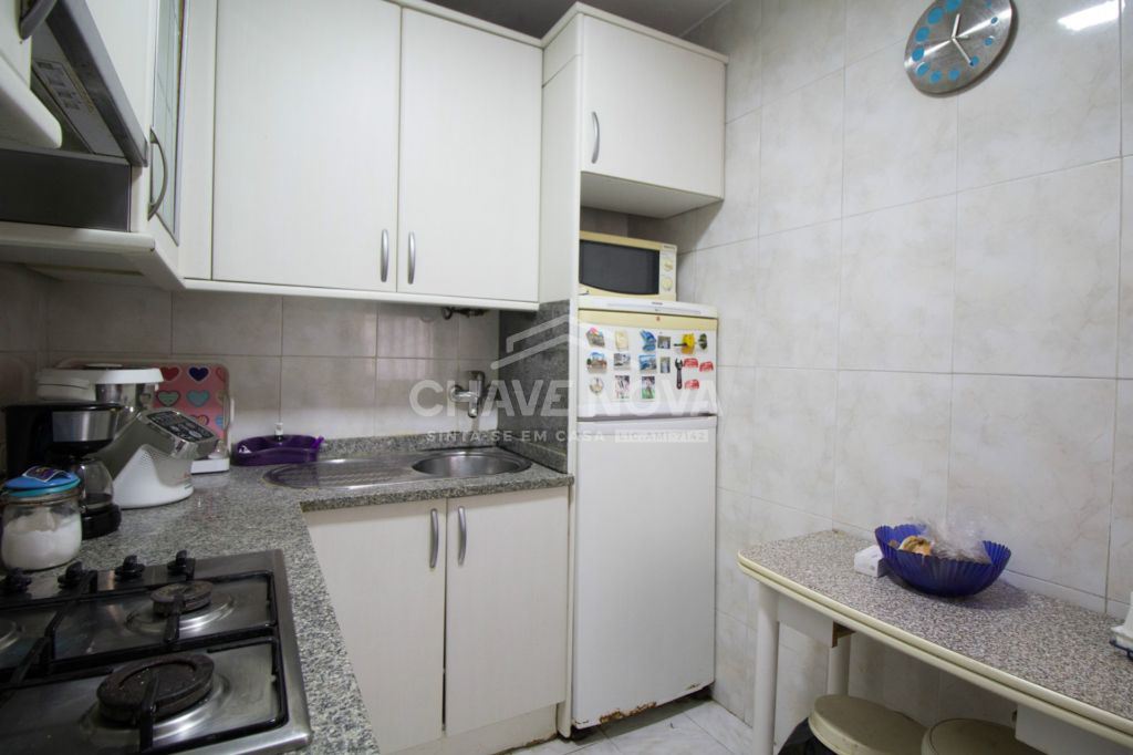 O imóvel tem 88m2 de área bruta, 80m2 de área útil e é composto por hall de entrada, sala comum, cozinha equipada (placa, forno e exaustor), lavandaria, hall, 2 quartos, quarto interior (+1) com janela directa, 2 WC's e 2 varandas.