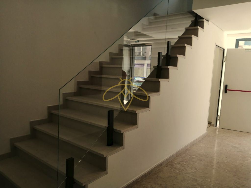 Portas blindadas com fechadura de interior e alta segurança, vídeo-porteiro por código e arrecadação.