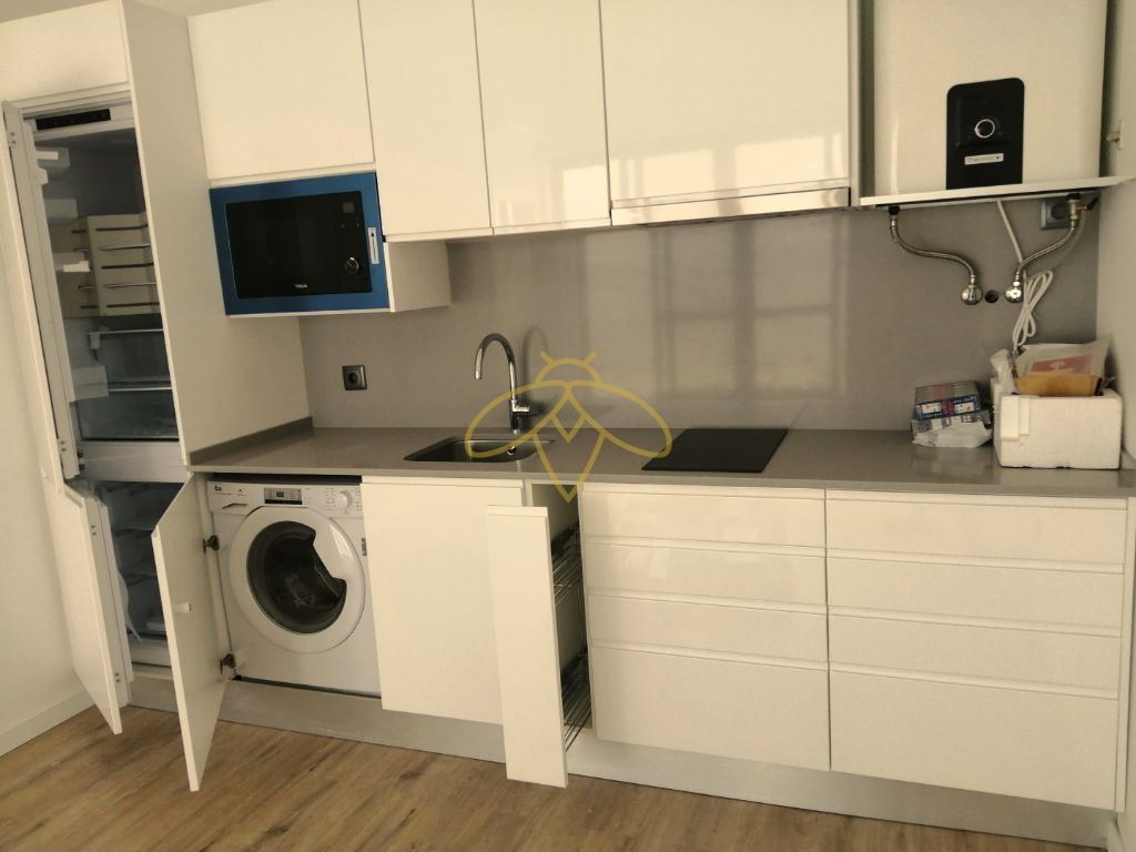 Kitchenettes (com acabamentos em branco) equipadas com placa, forno, micro-ondas, frigorífico e exaustor; ar-condicionado, varandas, portas lacadas a branco, chão flutuante vinílico, tectos em gesso cartonado, portadas a branco, instalações sanitárias, pavimento e paredes em mosaico de Grés branco, Tudo muito clean.
