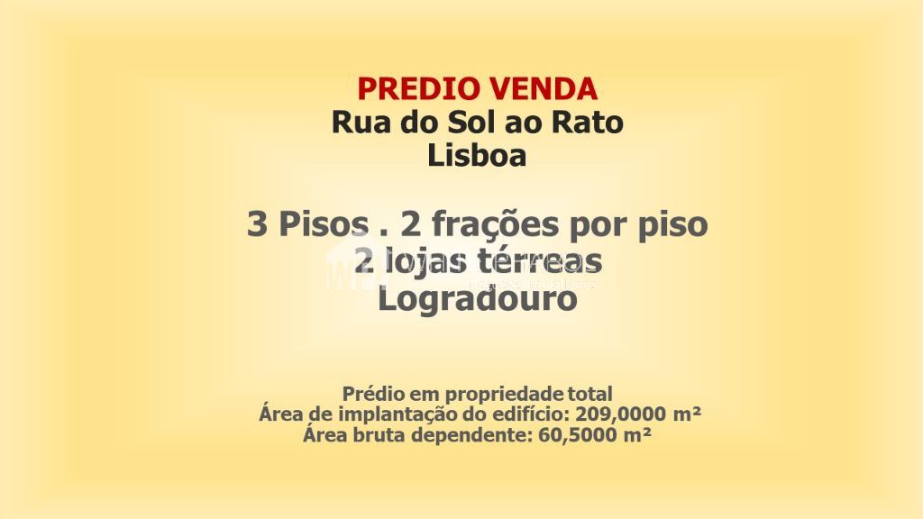Prédio para reabilitação, com 3 pisos e 2 fracções por piso. 2 Lojas no r/c com entrada independente. Logradouro nas traseiras do prédio que poderá ser afecto às fracções.
