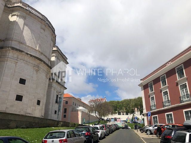 Prédio situado no Campo de Sta. Clara, com frente virada para o Panteão Nacional e contíguo à Feira da Ladra.