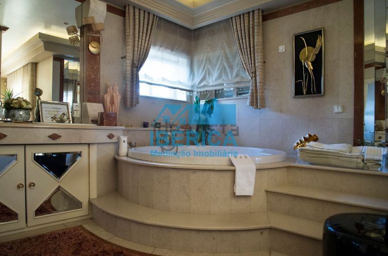 Moradia T4 de 4 frentes com excelente exposição solar. Moradia com quatro suites, uma sala dividida com sala de estar e sala de jantar, cozinha com copa equipada tudo com acabamentos de qualidade, pavimentos em mármore, áreas muito generosas.
