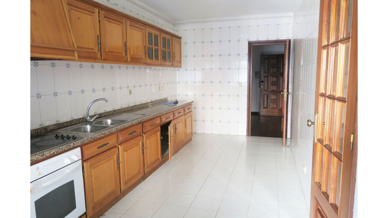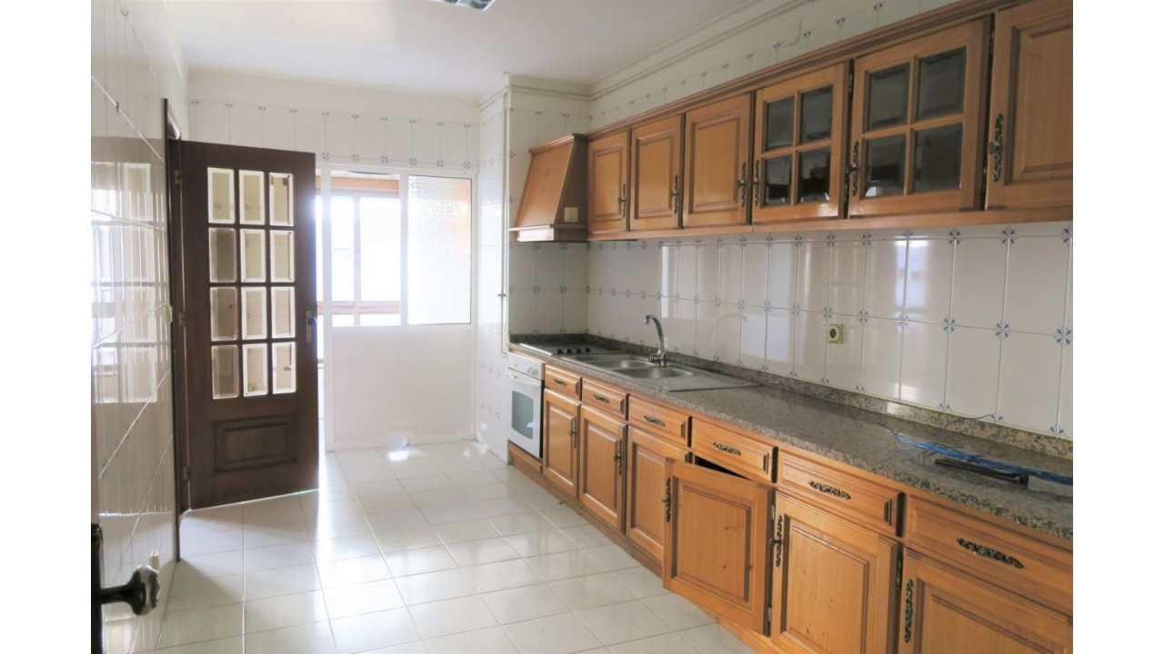 A cozinha possui placa, forno, exaustor e armarios. Gás canalizado.
