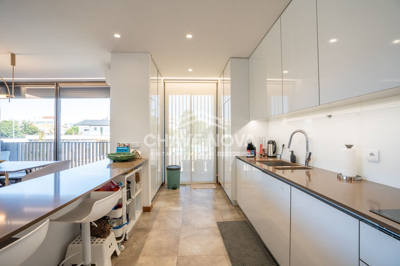 EXCLUSIVO CHAVE NOVA Maravilhoso apartamento T3, para venda, num 1º andar com elevador, situado em pleno centro de Santa Maria da Feira. Com 301m2 de área bruta, 143m2 de área útil, 3 frentes (Poente/Norte/Nascente), é composto por hall de entrada com vídeo porteiro e roupeiro embutido, sala e cozinha open space com acesso ao terraço, cozinha equipada (placa, forno, exaustor, micro ondas, combinado americano, máquina de lavar loiça, máquina de lavar e secar roupa), hall com roupeiro embutido, 3 quartos com roupeiros embutidos (sendo um suite com base de duche e closet), 2 WC’s (completo + serviço), outro terraço (com acesso pelos quartos) e garagem fechada para 3 viaturas na cave (com carregamento para carro elétrico). Dispõe ainda de ar condicionado, piso radiante nos WC’s, focos embutidos, estores elétricos e móvel de tv com lareira (decorativa). Condomínio com piscina, parque infantil, sala de condomínio com WC, casa de lixo com contentores, zonas ajardinadas ao redor dos edifícios e porteiro. Excelente localização, próximo das escolas, supermercados, transportes, comércio, serviços e acessos à auto estrada. Localização: - 300m do Supermercado Continente Modelo Santa Maria da Feira; - 450m da USF Terras de Santa Maria; - 650m da Escola Secundária de Sta. Maria da Feira; - 700m do Estádio Marcolino Castro; - 750m do ISVOUGA - Instituto Superior de Entre o Douro e Vouga; - 1000m do Hospital São Sebastião; - 1200m dos Passadiços; - 1200m do Supermercado Mercadona; - 1500m dos acessos A47/N223; - 1700m do Castelo de Santa Maria da Feira; Para além deste imóvel, dispomos de mais imóveis que de certeza encaixam naquilo que pretende. Mais informações sobre este ou outro imóvel e marcações de visita, contacte-nos: Chave Nova Gaia Norte (Canidelo)
