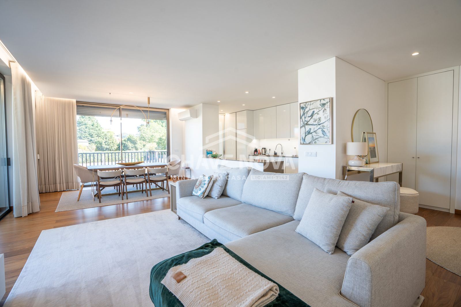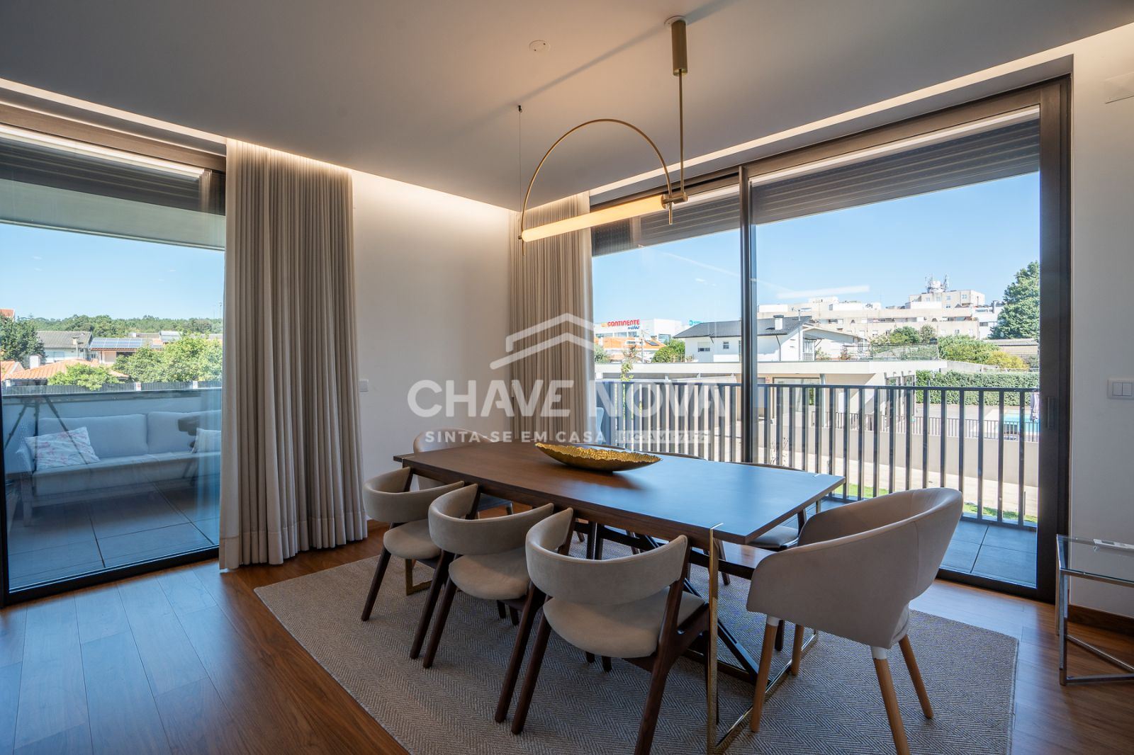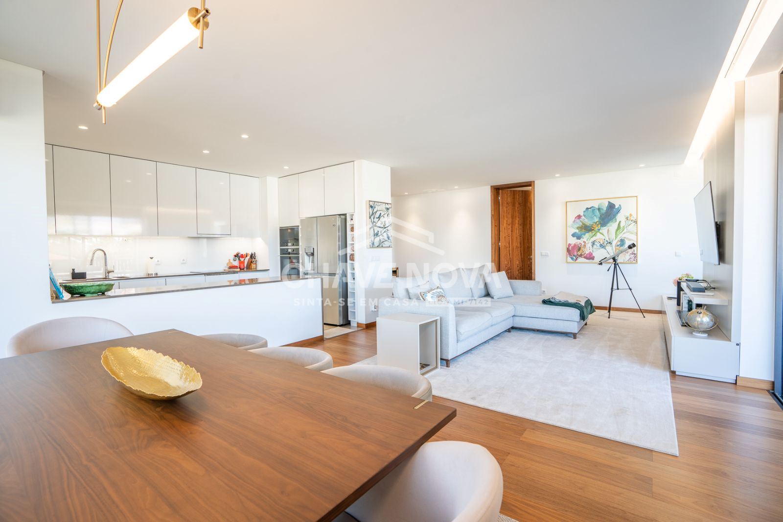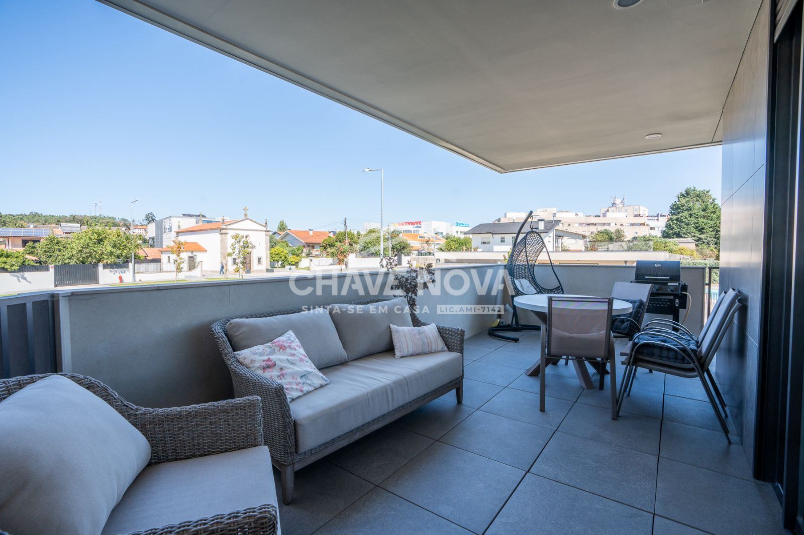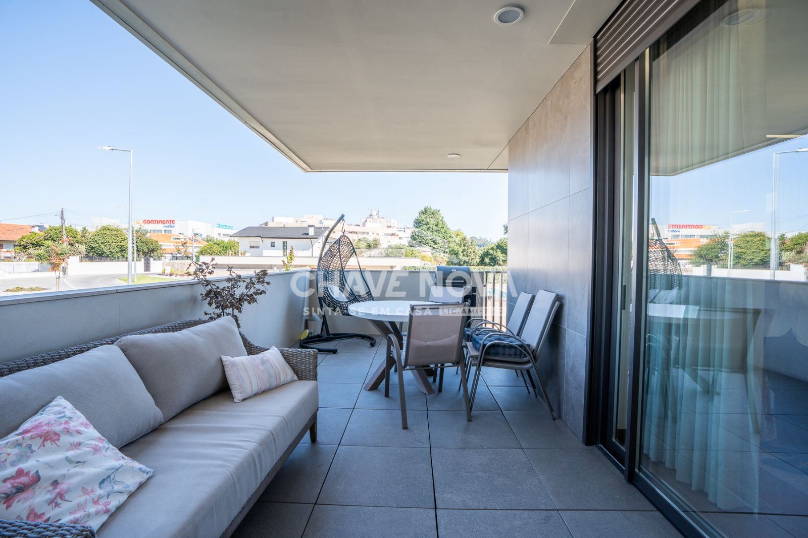 Apartamento T4 para venda no prestigiado condomínio fechado Hill Gardens, em Santa Maria da Feira.Construído em 2022, este imóvel destaca-se pela sua excelente orientação solar, áreas generosas e acabamentos de elevada qualidade. Com uma área bruta privativa de 172m² e uma impressionante varanda/terraço de 120m², oferece o espaço ideal para desfrutar de momentos de lazer e convívio ao ar livre.O apartamento dispõe de duas suítes, proporcionando maior conforto e privacidade, e uma ampla sala em open space com a cozinha, criando um ambiente moderno e funcional. O pavimento em nogueira de madeira maciça confere um toque de elegância e sofisticação, enquanto o sistema de ar condicionado garante o conforto térmico durante todo o ano.A garagem fechada tem capacidade para três carros, oferecendo segurança e comodidade.O condomínio, além de ser recente e exclusivo, conta com piscina e zonas comuns bem cuidadas, ideais para relaxar e socializar em ambiente tranquilo e seguro.Existe ainda a possibilidade de venda com mobília incluída, tornando esta uma oportunidade única para quem procura um lar pronto a habitar, com estilo e qualidade.Para mais informações ou agendamento de visita, entre em contacto.