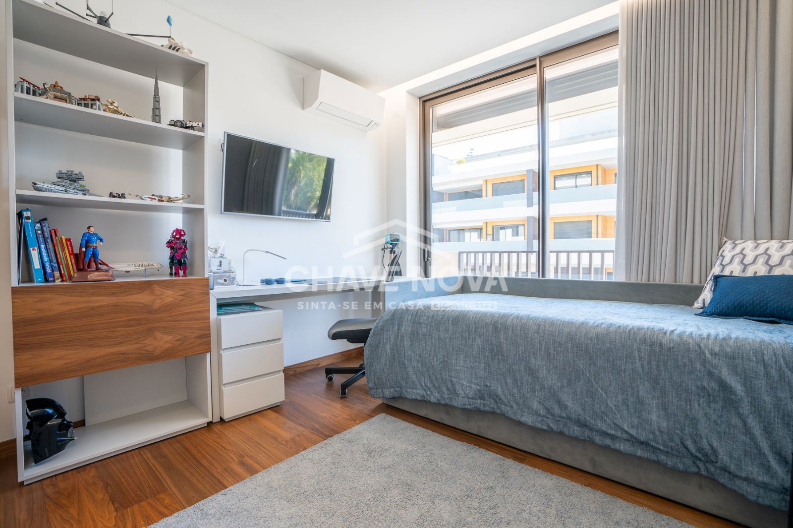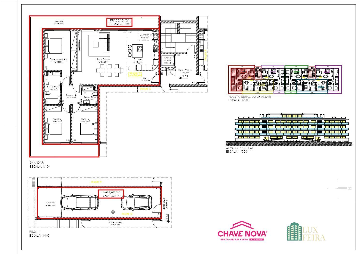 Apartamento T3 no Empreendimento LUX FEIRA. Constituído por um total de 28 habitações. Empreendimento com uma localização privilegiada no centro de Santa Maria da Feira. A sua excelente localização geográfica permite a acessibilidade a diferentes pontos do país. Os apartamentos são de tipologia T1 e T3, amplos e luminosos, apresentando uma arquitetura contemporânea e desenho único, em harmonia com as zonas exteriores através das suas varandas/terraços. As garagens individuais, com acesso direto através de portão fechado e automatizado. MAPA DE ACABAMENTOS Geral - Cozinha mobilada e equipada eletrodomésticos gama media alta; - Ar condicionado tecnologia inverter gama media alta; - Blackouts interiores; - Caixilharia com ruptura térmica e vidro duplo térmico; - Bomba de calor; - Tetos falsos com iluminação led; - Pavimento em flutuante; - Carpintaria lacada branco; - Vídeo-porteiro; - Portas a total altura dos espaços; - Porta de segurança. Conforto - Habitações certificadas termicamente; - Isolamento acústico e térmico entre habitações; - Revestimento exterior em capoto; - Ar condicionado tecnologia inverter (todos os compartimentos); - Garagem individual com portão automático. Outros - WC - moveis lavatório; - WC - resguardo de base de chuveiro e banheira; - Marca Sanitana; - Sancas em toda a habitação. Exterior - Revestimento a capoto; - Proteção de vidros nas varandas. Tem o mundo à sua porta, pois para além de poder usufruir dos excelentes acessos à autoestrada A1, ponto de paragem de autocarros, serviços e espaços diversificados, tais como, Hipermercados, Farmácias, Hospitais, Hotéis, Escolas públicas e privadas. Para além deste imóvel, dispomos de mais imóveis que de certeza encaixam naquilo que pretende. Agende a sua visita! Chave Nova Feira