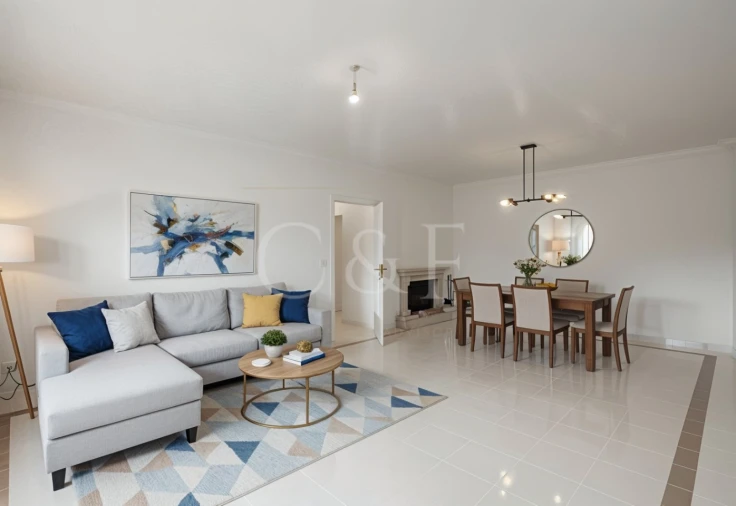 A entrada abre-se em boas vindas num hall que com o seu corredor dá acesso a todas as divisões do apartamento, uma sala onde a lareira espera pelos dias mais lentos, aqueles em que o tempo abranda e a conversa se estende. A varanda deixa entrar o exterior sem pressa, trazendo luz e pequenas pausas ao longo do dia.