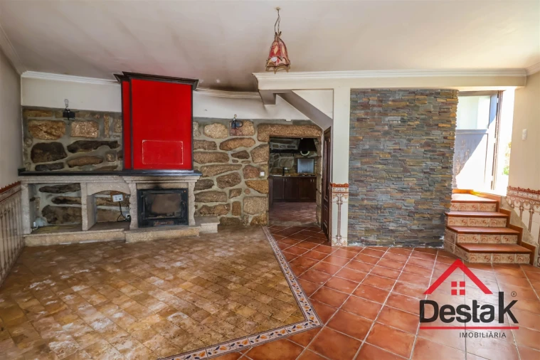 No rés-do-chão, encontra uma acolhedora sala de estar equipada com recuperador de calor, perfeita para momentos em família, uma cozinha funcional, casa de banho e ainda um quarto que pode ser utilizado como anexo ou espaço multifuncional.