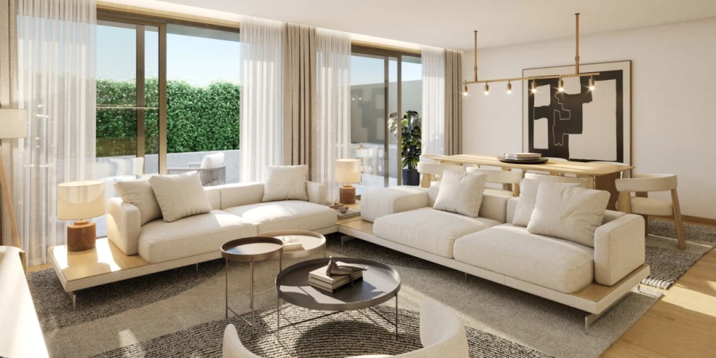 Os apartamentos, de tipologias T2, T3 e T4, apresentam generosas áreas, com um design open space que proporciona uma sensação de amplitude e modernidade. Equipados com tecnologias avançadas, como bomba de calor e piso radiante, garantem um ambiente confortável durante todo o ano. Além disso, contam com painéis fotovoltaicos para uma abordagem mais sustentável em relação à energia.