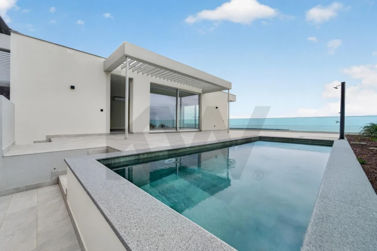 No exterior, encontrará um espaço pensado para relaxar e desfrutar do clima ameno da Madeira, com uma piscina privada convidativa e áreas de lazer perfeitas para aproveitar o sol durante todo o ano.