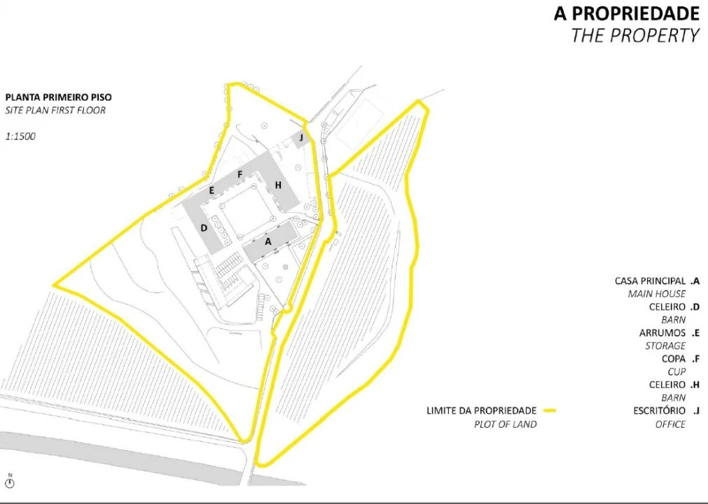 A casa principal de estilo rústico, composta por 11 suítes, 3 salas espaçosas com lareiras tradicionais e uma cozinha. Existem ainda várias dependências como o celeiro e a adega que está convertida em espaço para eventos.